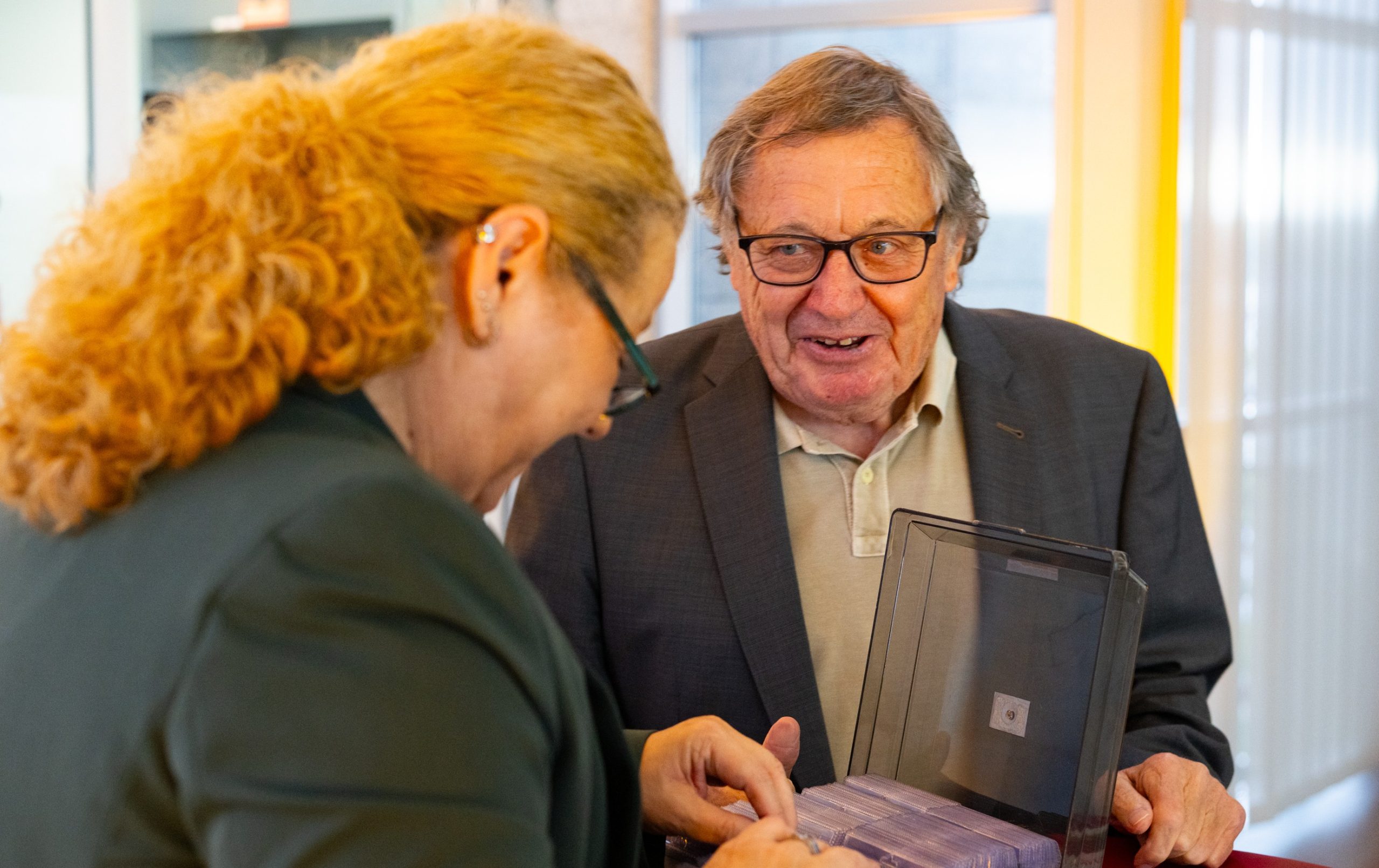 Betty Stellmacher (STADTGESPRÄCHE.ruhr e.V.) im Gespräch mit dem Fotografen Hennes Multhaupt – © Fotostudio Essen / Dr. Claudia PosernLink zur Webseite der STADTGESPRÄCHE.ruhr e.V.