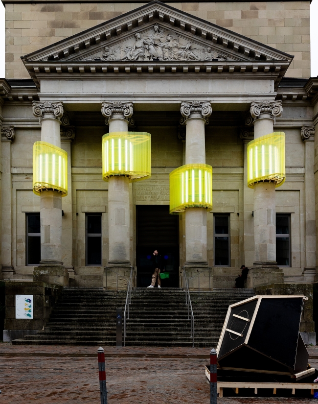 Zu sehen sind Arbeiten von Peter Piller, Andrea Pichl, Martin Pfeifle und anderen etablierten Positionen, ergänzt durch Beiträge von Studierenden sowie performative Prozesse im Stadtraum – etwa das fortlaufende Werk des Wuppertaler Künstlers Samuel Treindl, das über Wochen hinweg direkt vor Ort auf dem Geschwister-Scholl-Platz entsteht.