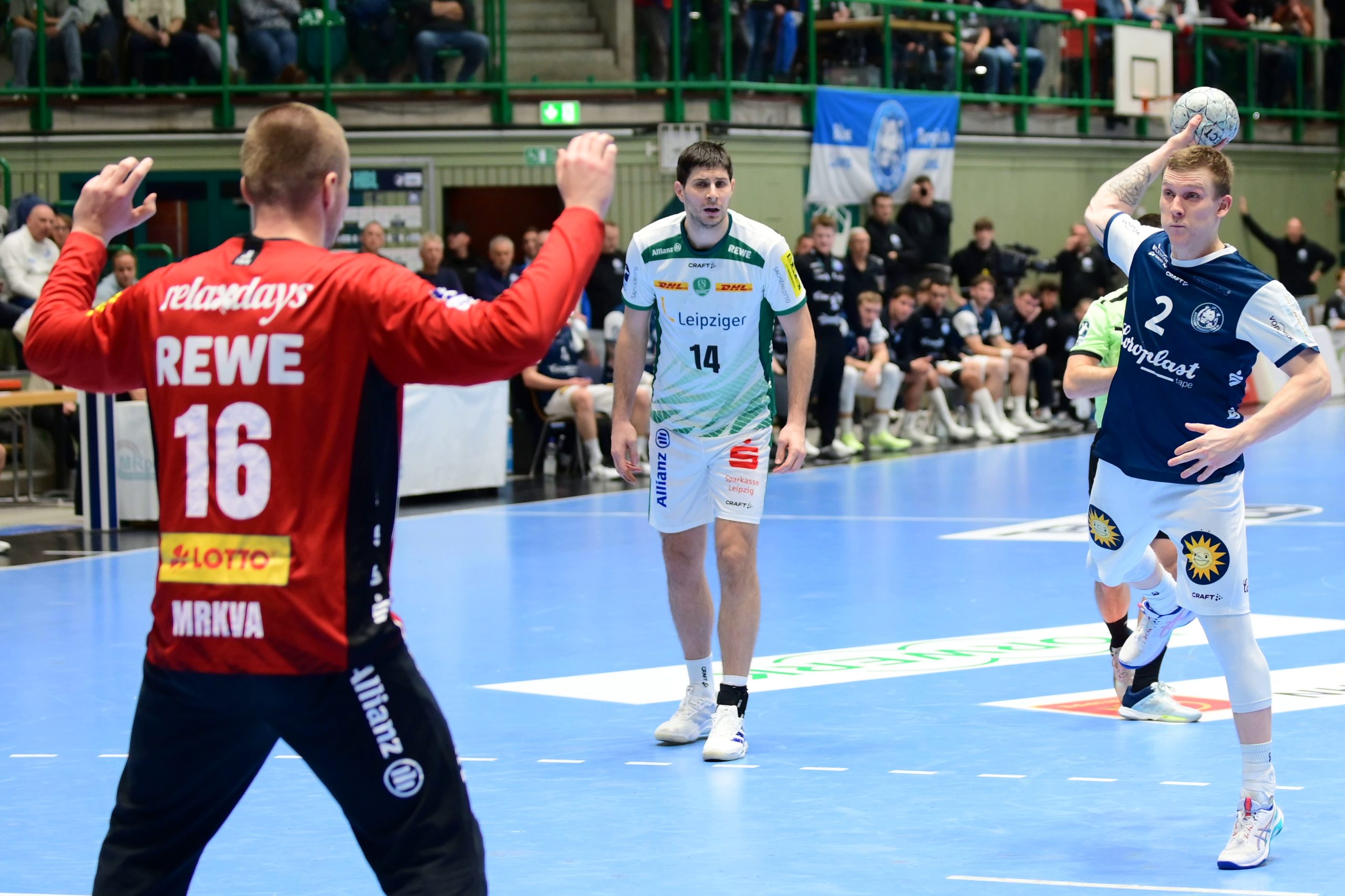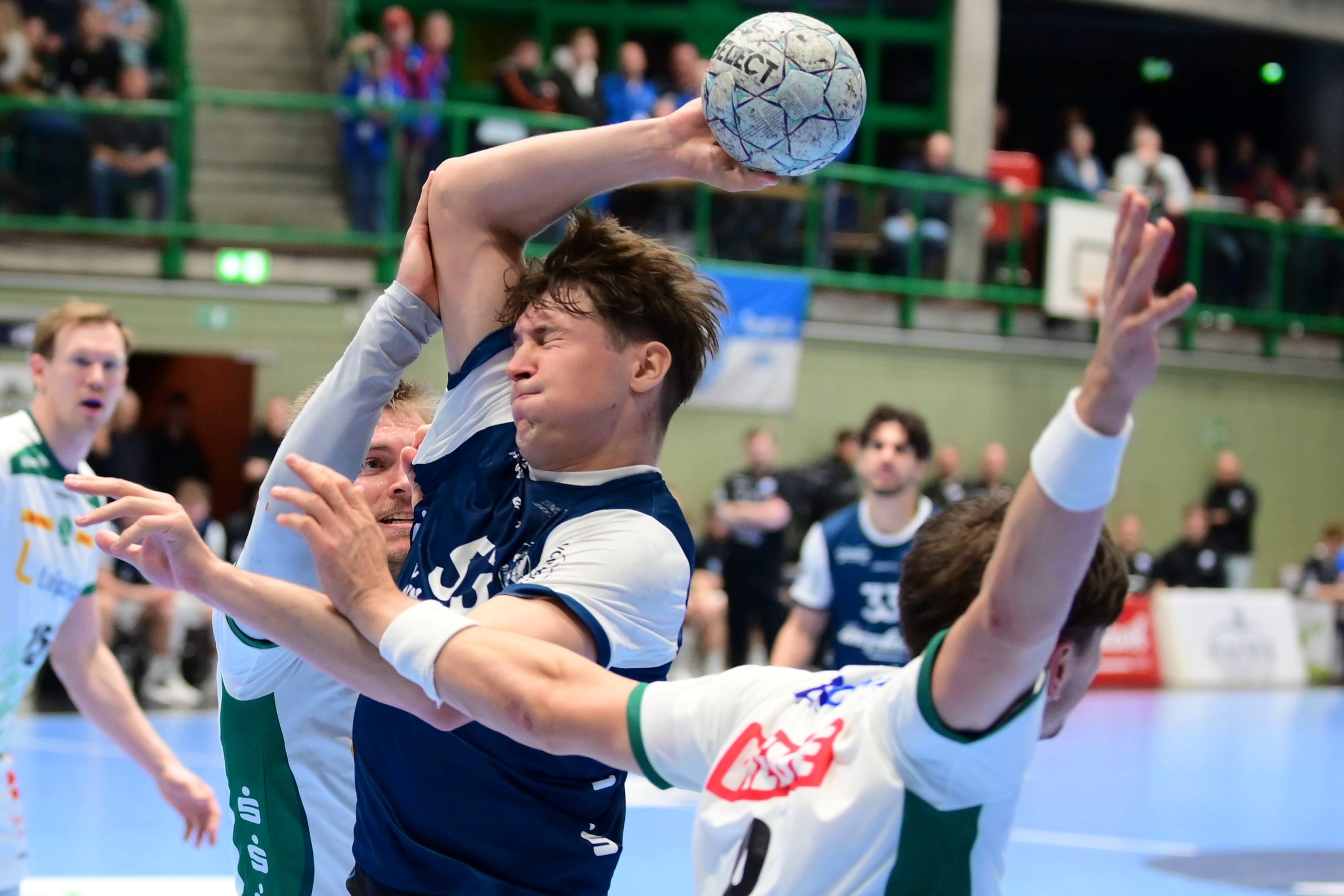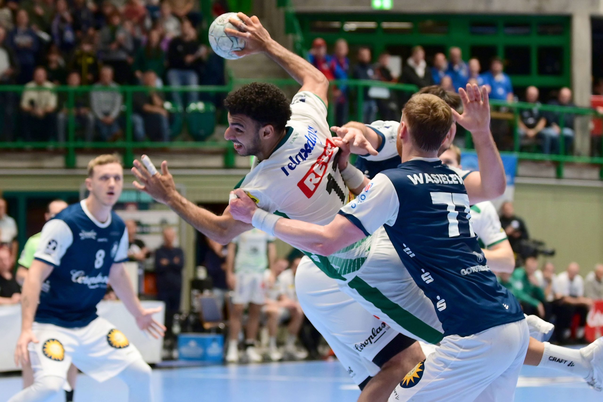 beiden Bälle der zweiten Hälfte, Sören Steinhaus stellte auf 15:15, Eloy Morante Maldonado besorgte die Führung, wiederum Steinhaus erhöhte. Von kleineren Misserfolgen erholte sich die Mannschaft jeweils schnell, dazu funktionierte die Abwehr – oft mit einer 5:1-Variante – sehr ordentlich.