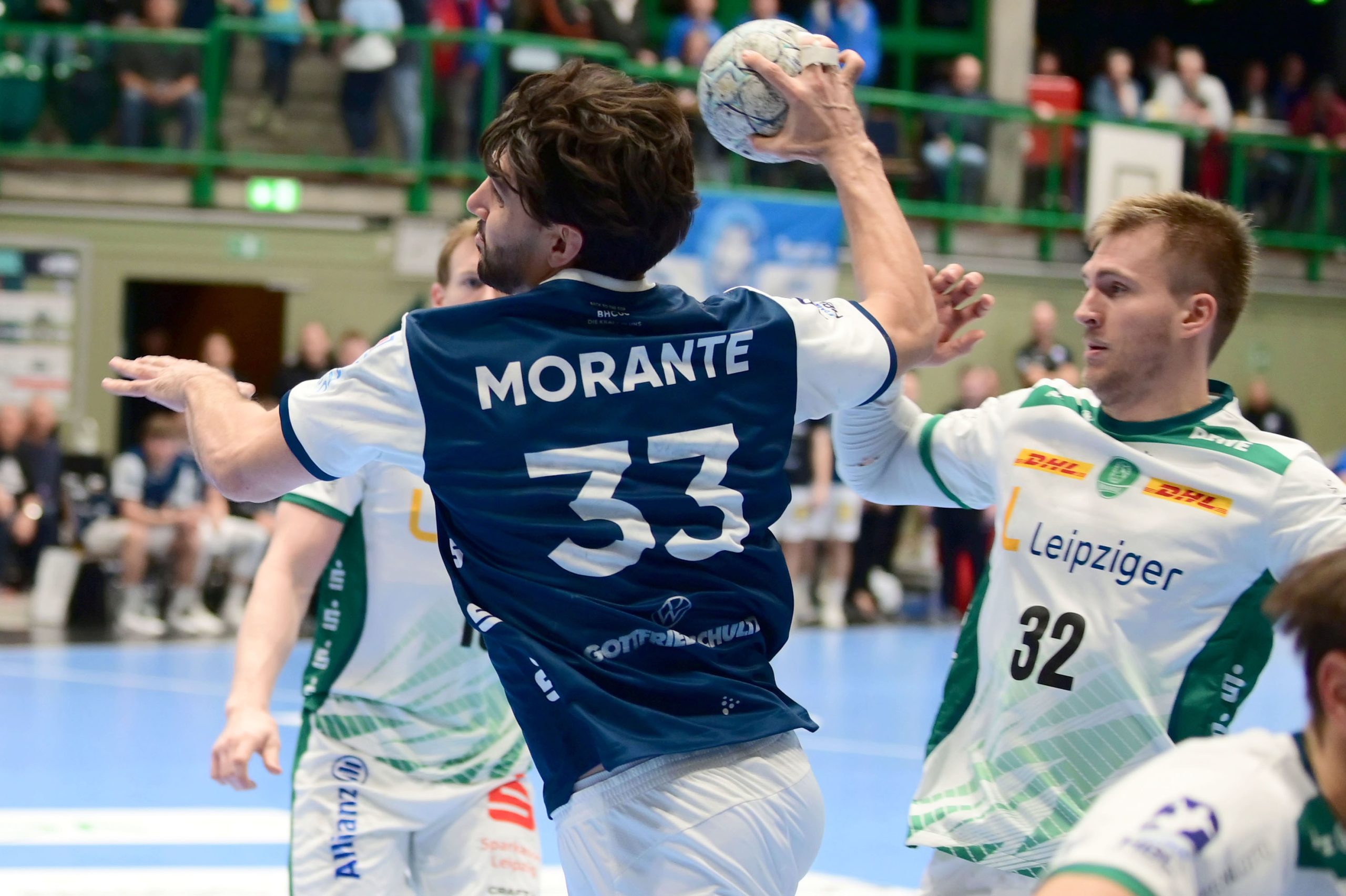 Eloy Morante Maldonado erzielte fünf Treffer im Kellerduell – © Jochen ClassenDennoch ist der dritte Zähler der laufenden Saison gesichert, und der BHC bleibt als 17. vor den Leipzigern. Schon in der ersten Halbzeit erwischten die Löwen den besseren Start. 3:1 und 6:4 lagen die Hausherren vorne, präsentierten sich solide in der Abwehr und hatten in Christopher Rudeck den besseren Torhüter zwischen den Pfosten. Der 31-Jährige hielt bis zum Schluss 30 Prozent der Bälle, lieferte zwölf Paraden, zwei davon sogar bei Siebenmetern.