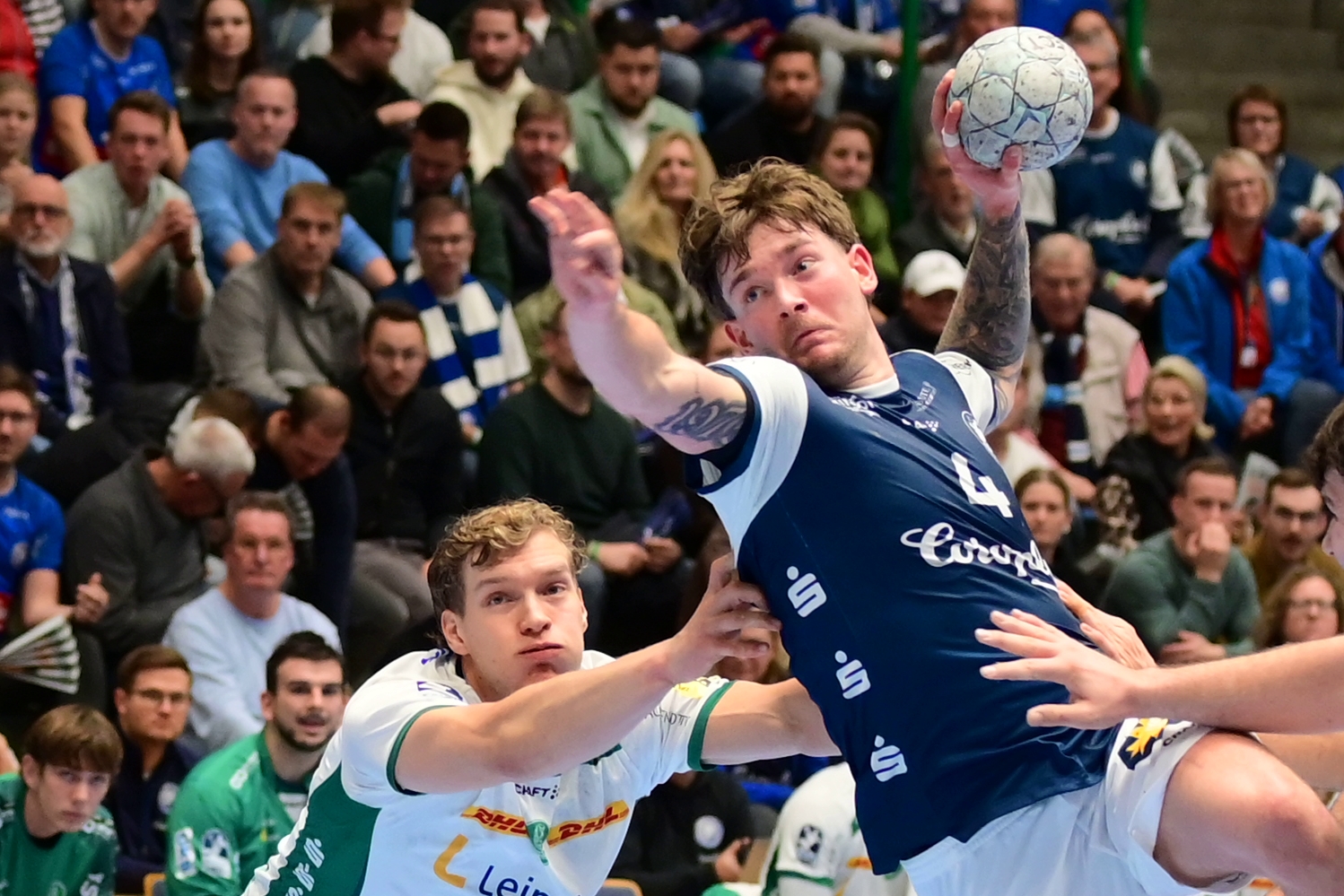 Gab alles, der dreifache BHC-Torschütze Sören Steinhaus – © Jochen ClassenMarkus Pütz: „Wir ärgern uns, weil wir dem zweiten Punkt näher sind. Wir kommen gut rein, führen, haben nur eine Phase, in der wir durch eigene technische Fehler ein bisschen nachlassen. Leipzig macht es dann gut, geht auch mit einer Führung in die Halbzeit. Danach machen wir es wirklich gut in der 5:1 mit Torhüterparaden von Christopher Rudeck. Dann ist es schade, wenn wir kurz vor dem Ende mit 28:26 führen, letztlich aber nur mit einem Punkt rausgehen. Es gibt die eine oder andere Situation, die unglücklich für uns lief. Zum Schluss kommt der letzte Pass auf Noah Beyer leider nicht an. Sonst hätten wir vielleicht den Deckel draufmachen können. Es ist ein Punkt zu Hause gegen eine Mannschaft, die uns im gesamten Konstrukt hoch überlegen ist. Die Zuschauer haben super unterstützt. Zwei Spieler möchte ich rausheben: Eloy Morante Maldonado und Aron Seesing, die die ganze Woche nicht trainieren konnten und dann heute so durchgezogen haben. Wir ärgern uns natürlich, aber wenn man daran denkt, dass wir gegen Erlangen eine ähnliche Situation hatten und das Spiel noch aus der Hand gegeben haben, nehmen wir den Punkt heute positiv für uns mit.“
