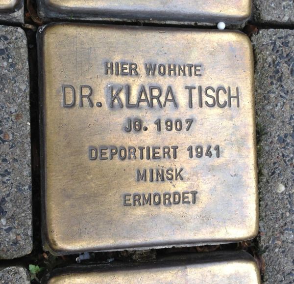 Am 10.11.1941 wurde Cläre Tisch, gemeinsam mit ihren beiden Schwestern, Schwager und Nichte, von Elberfeld nach Minsk deportiert. Die Fahrt dauerte drei Tage. Aller Wahrscheinlichkeit wurde sie am 15.11.1941 ermordet.“