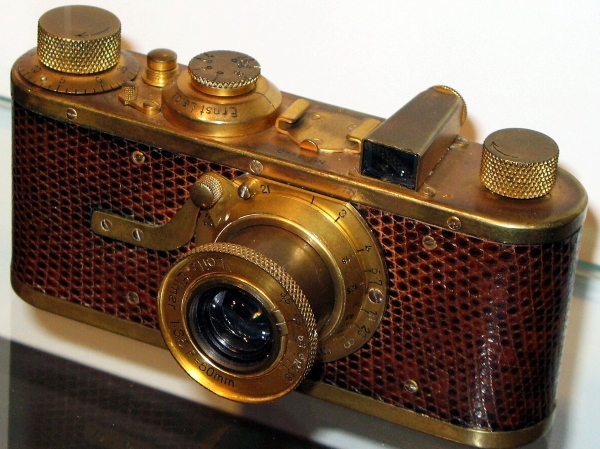Die Leica-Kamera in Luxusausführung – © CC BY-SA 2.0 fr 3.Er ließ sich das Gehäuse aus Aluminium gießen. Die Kamera passte tatsächlich in eine Jackentasche. Aber die Patentanmeldung wurde damals abgewiesen. Warum?