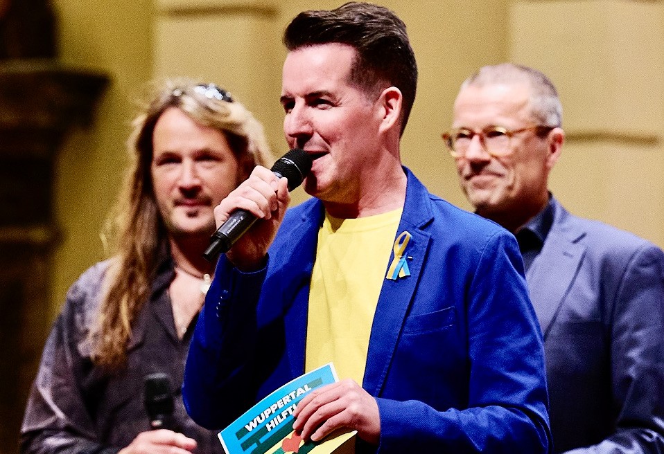 Stefan Mageney, 1. Vorsitzender von WUPPERTAL HILFT!, Moderator Michael Brockordt und OB Dr. Uwe Schneidewind bei einem vorherigen Charity-Festival – © Archivfoto Taro KataokaSeit 2005 hat WUPPERTAL HILFT! über 500.000 Euro für den guten Zweck buchstäblich eingespielt und an Hilfsorganisationen weitergereicht. Alle Künstler treten bei den Crossover-Festivals ohne Gage auf. Und auch die 10 Euro Eintritt landen 1:1 im „Spenden-Topf“. Die gesammelten Spenden (inkl. 10.-€ Eintritt) werden darüber hinaus von der Bethe-Stiftung verdoppelt!
