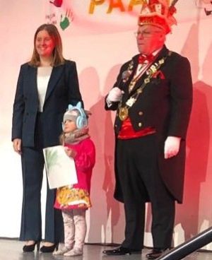 Die Wuppertaler Oberbürgermeisterin Miriam Scherff mit Tochter und dem Wuppertaler Ober-Karnevalisten Wilfried Michaelis – © Lore Duwe