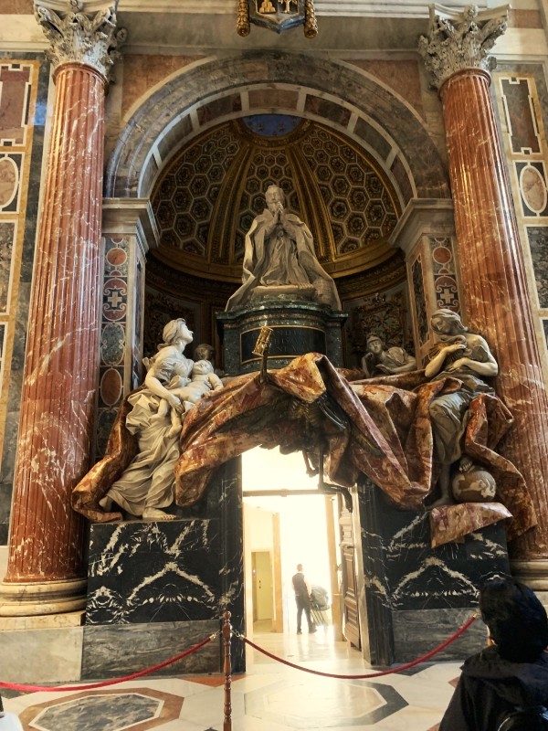 Grabmal Alexander VIII im Petersdom von Bernini – © UniService Third MissionAls er dann irgendwann einmal einen Entwurf von Bernini sah, sagte er lakonisch: ‚Wenn man nicht will, dass Bernini etwas baut, darf man sich seine Entwürfe nicht anschauen.‘ Wenn man sie einmal gesehen hatte, dann waren sie überwältigend.“ Eine ganz besondere Beziehung verband ihn allerdings mit dem späteren Papst Urban VIII. (1623 – 1644). „Urban VIII., als Kardinal hieß er noch Maffeo Barbarini, war schon zu Zeiten seiner Kardinalstätigkeit mit Bernini befreundet, soweit das über gesellschaftliche Standesgrenzen möglich war. Er war ihm sehr wohl gesonnen.“