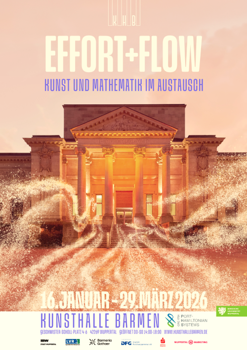 Die neue Ausstellung „effort + flow – Mathematik und Kunst im Austausch“ führt diesen Ansatz konsequent fort. Sie entsteht in Kooperation mit dem von der Deutschen Forschungsgemeinschaft geförderten Sonderforschungsbereich „Port-Hamiltonian Systems“ der Bergischen Universität, der an der Schnittstelle von Mathematik, Ingenieurwesen und Physik grundlegende Modelle für Energieflüsse und dynamische Wechselwirkungen erforscht. Erstmals werden jetzt diese theoretischen Konzepte in Beziehung zu künstlerischen Arbeiten gesetzt und zugleich als Impulse für gestalterische und künstlerische Forschung genutzt.