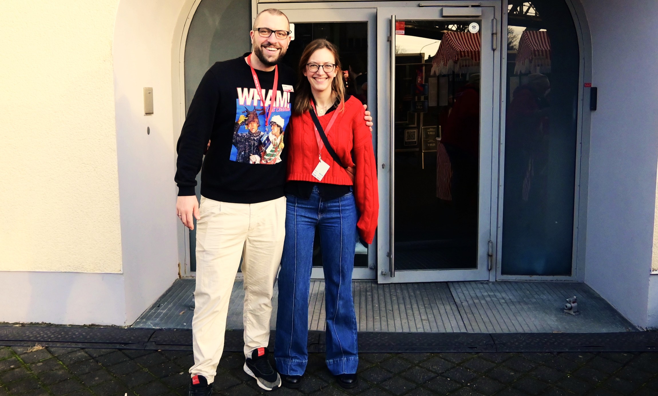 Bestens gelaunt und in Weihnachtsstimmung: Oberbürgermeisterin Miriam Scherff und Jürgen Harmke, Veranstaltungs-Chef der Sparkasse Wuppertal, die Sponsor der Veranstaltung war – © Jochen ClassenZu den zentralen Ansätzen gehörte auch Die Aktion „Freude teilen“. Von den 5 Euro Eintrittsgeld wird ein Euro für soziale Zwecke, nämlich an die Wuppertaler Aktion „Kindertal“ sowie an ein Hilfsprojekt der VEM im Kongo gespendet, mit dem das Gemeinschaftsgefühl durch soziales Handeln untermauert wird.