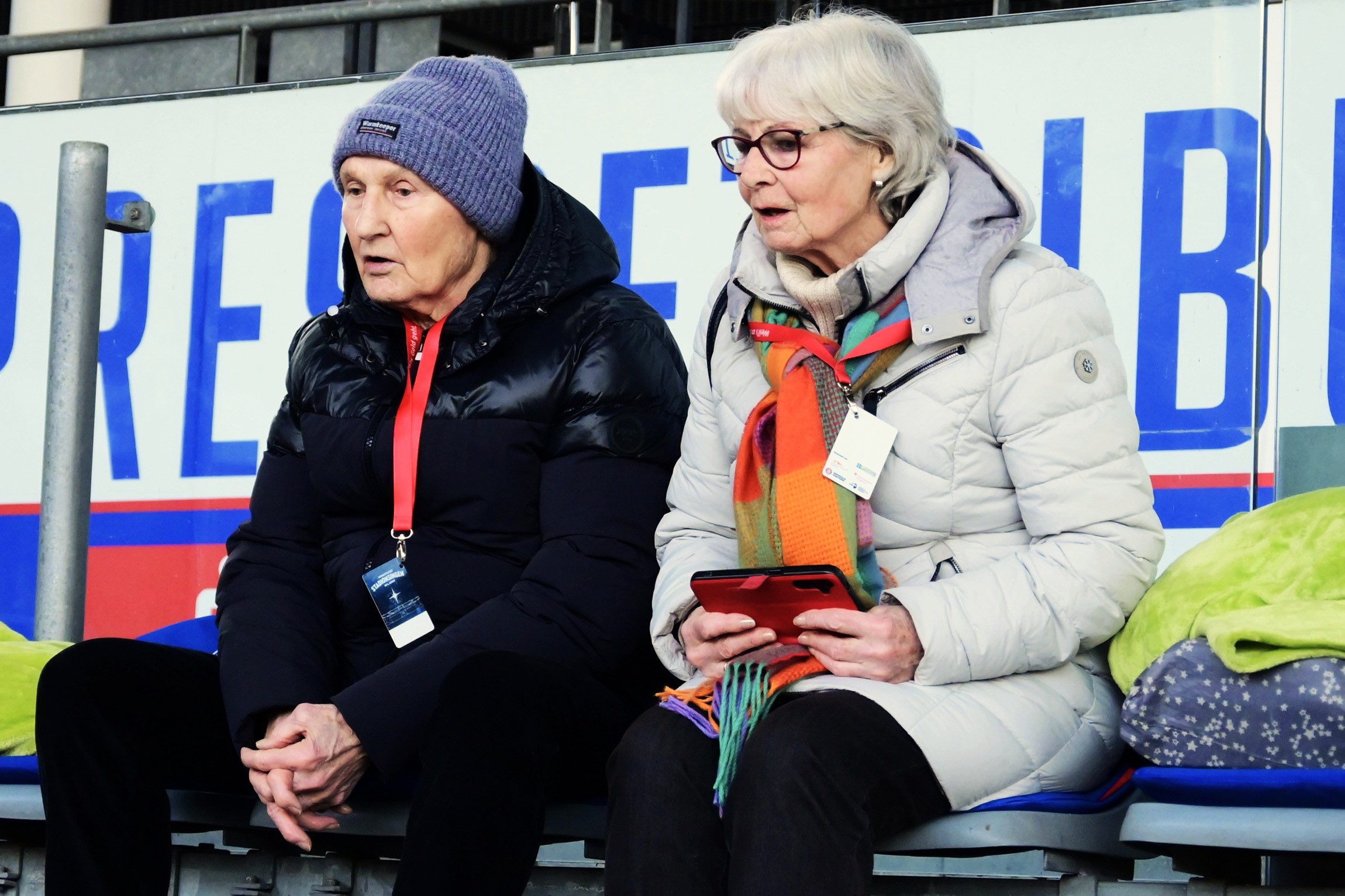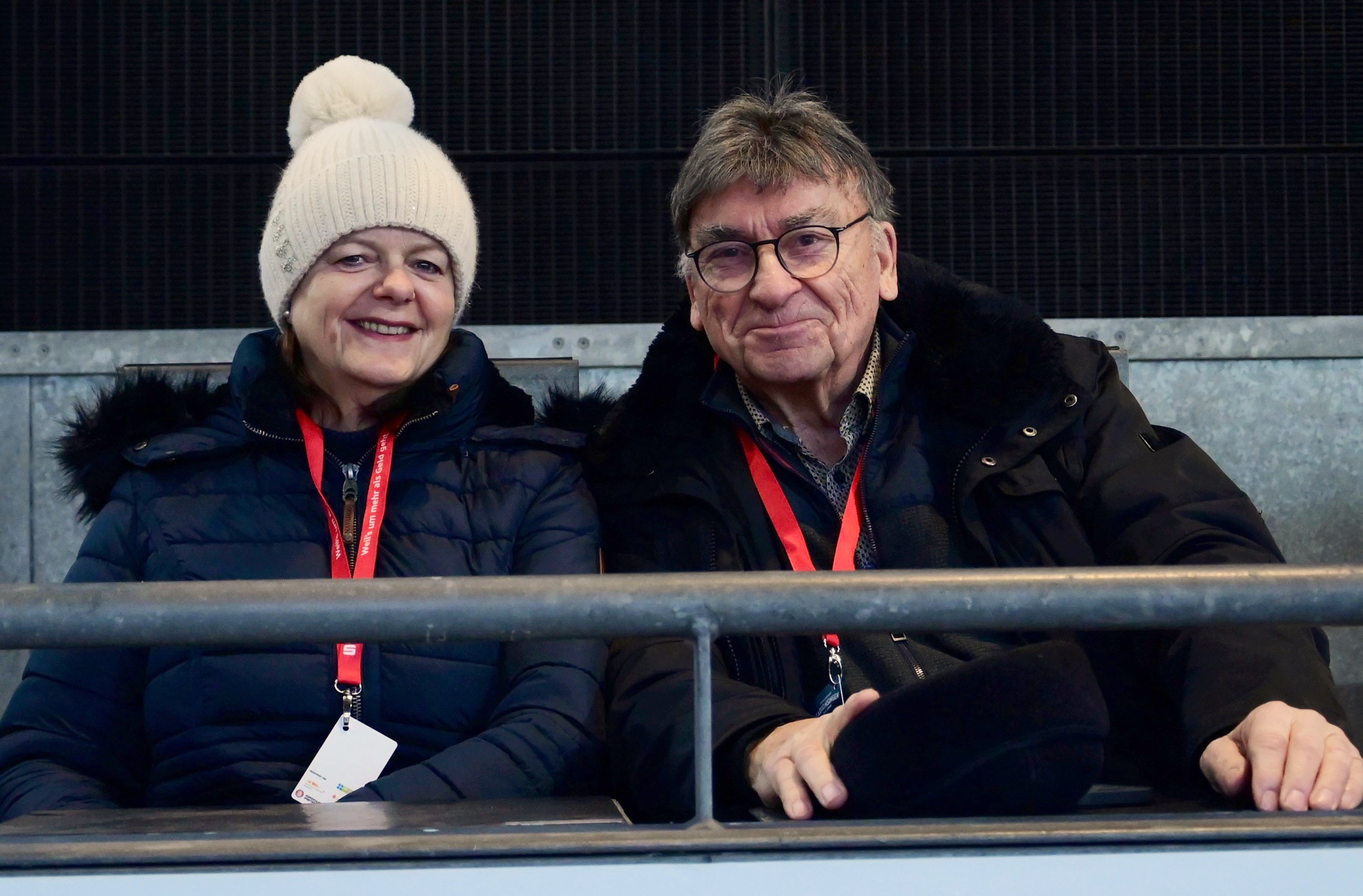 Sang an dem Ort Weihnachtslieder, an dem er früher viele Tore geschossen hat: WSV-Legende Günter „Meister“ Pröpper mit Ehefrau – © Jochen ClassenDoch als an einem der stimmungsvollsten Momente des Abends auf den Rängen spontan das Volkslied: „Ob vom Ölberg ob vom Loh – Wir sind alles Wuppertaler Jonges .. „ angestimmt wurde, brach die Regie (?) dieses „Mitsingen“ mit Hinweis auf den Zeitplan die im Publikum aufflammende große Stimmung zum Mitsingen abrupt ab. Ein Mitsingen, das durch relativ kleine elektronische Tafeln mit Liedtexten unterstützt, wohl auch gelenkt werden sollte.