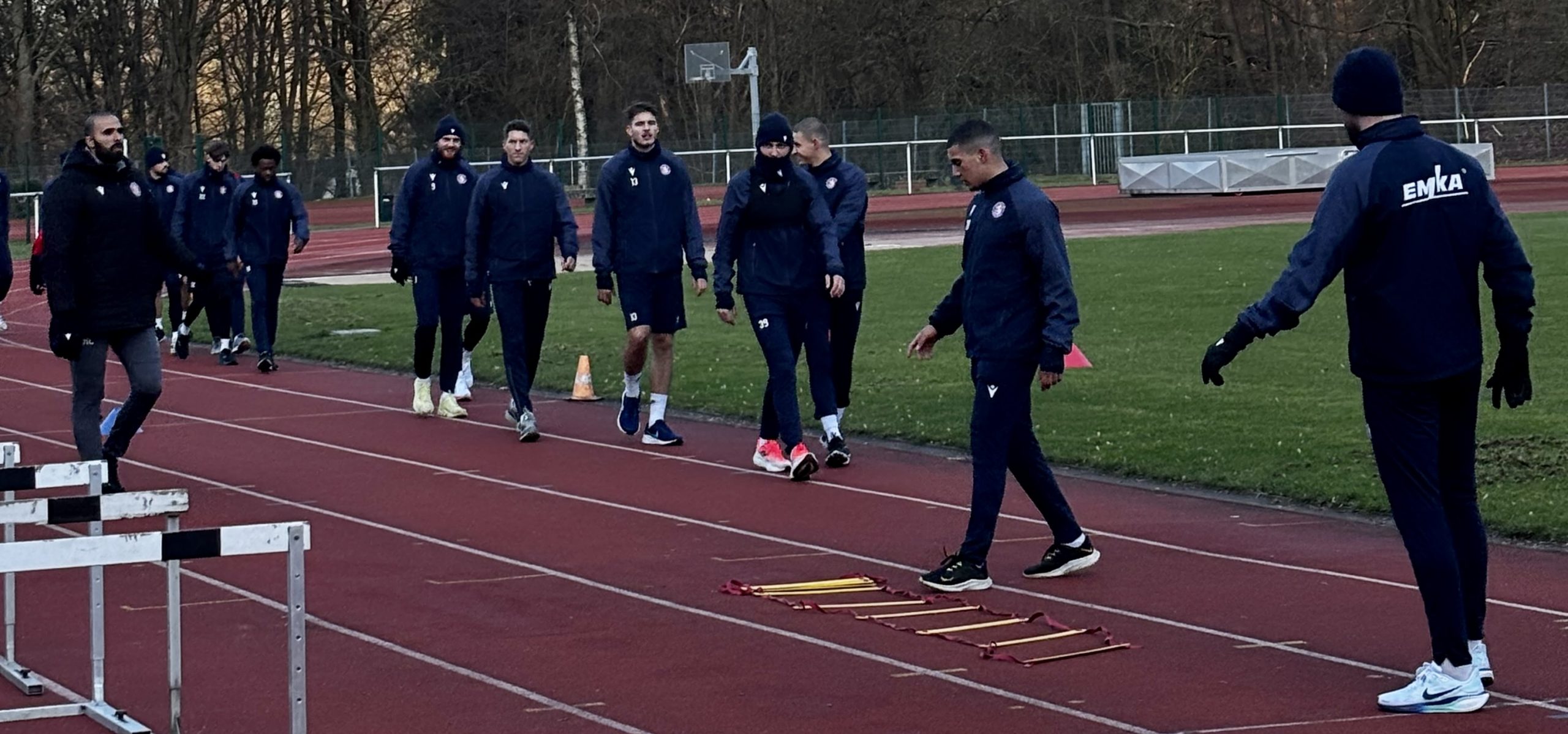 Spieler des Regionalisten Wuppertaler SV beim Training auf der Sportanlage an der Oberbergischen Straße – © Siegfried JähneTabellen-Schlußlicht SSVg Velbert hat sich noch nicht aufgegeben. Den Klassenerhalt wollen die Nachbarn mit einem signifikant veränderten Kader anvisieren. Dazu gehören als Neuzugänge der 20jährige Japaner Haruto Idoguchi (20) für die Stürmerposition sowie im Tor Kevin Jackmuth (31), der von Eintracht Hohkeppel aus der Mittelrheinliga geholt wurde. Allerdings startete das Team von Trainer Bogdan Komorowski schon mit einer bitteren Niederlage ins neue Jahr: Im Nachholspiel gegen die SG Lotte mussten sich die Velberter letzte Woche vor 500 Zuschauern im eigenen Stadion 0:3 geschlagen geben und verloren zusätzlich Rechtsverteidiger Ismael Remmo, der nach zwei unnötigen Foulspielen mit gelb-rot vom Platz musste.