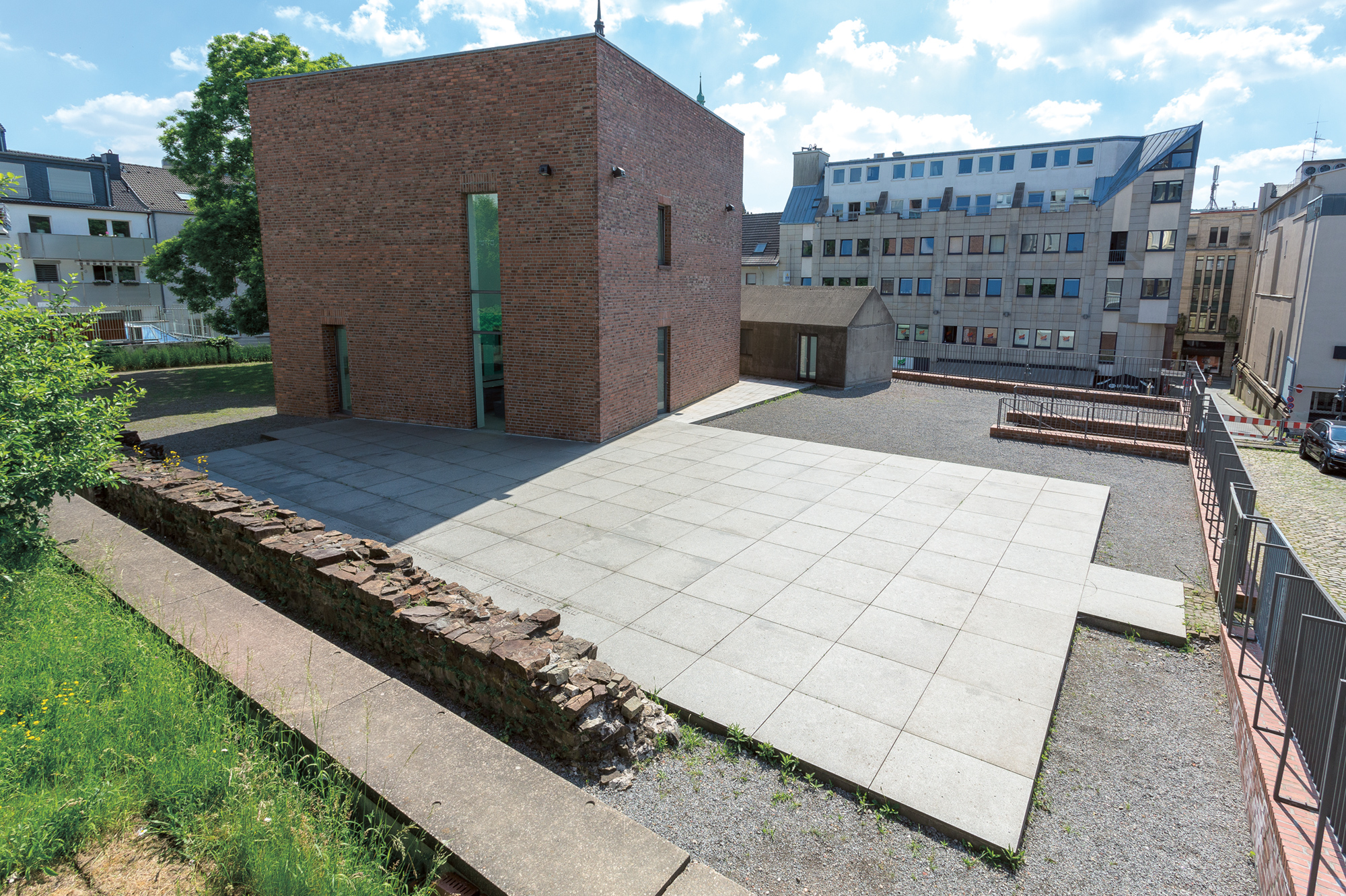 Die „Begegnungsstätte Alte Synagoge“ an der Genügsamkeitsstraße. Hier stand früher die Alte Synagoge Elberfeld, die in der Pogromnacht im November 1938 von den Nazis zerstört wurde – © Begegnungsstätte Alte Synagoge„Heute“, ergänzt Braun, „verstehen die christlich-evangelischen Interviewpartner diesen Synagogenbau auf einem ehemaligen Grundstück der evangelischen Landeskirche sozusagen als ungeschriebene materialisierte These“. Deutschlandweit sei der Neubau einer Synagoge auf ursprünglich evangelischem Gemeindeland einzigartig, erklärt Brauer, und daher sei die Geschichte der Entscheidungsfindung und des Bauprozesses eine besondere für Wuppertal. „1996 war die Lage schon dramatisch“, erklärt Prof. Brauer, „es gab so viele neue jüdische Mitbürger und Leonid Goldberg hat in diversen Ausschüssen darauf hingewiesen, dass die Gemeinde dringend eine größere Bleibe brauche. Aber es gab einfach kein freies Grundstück, dass zur Debatte stand. Das Areal der alten Synagoge ist eine Gedenkstätte, ein Ort der Begegnung. Und dann kam von vielen unterschiedlichen Seiten die Idee auf, der gewachsenen jüdischen Gemeinde das freie Grundstück, direkt angrenzend zur Gemarker Kirche zu überlassen, und zwar kostenfrei.“