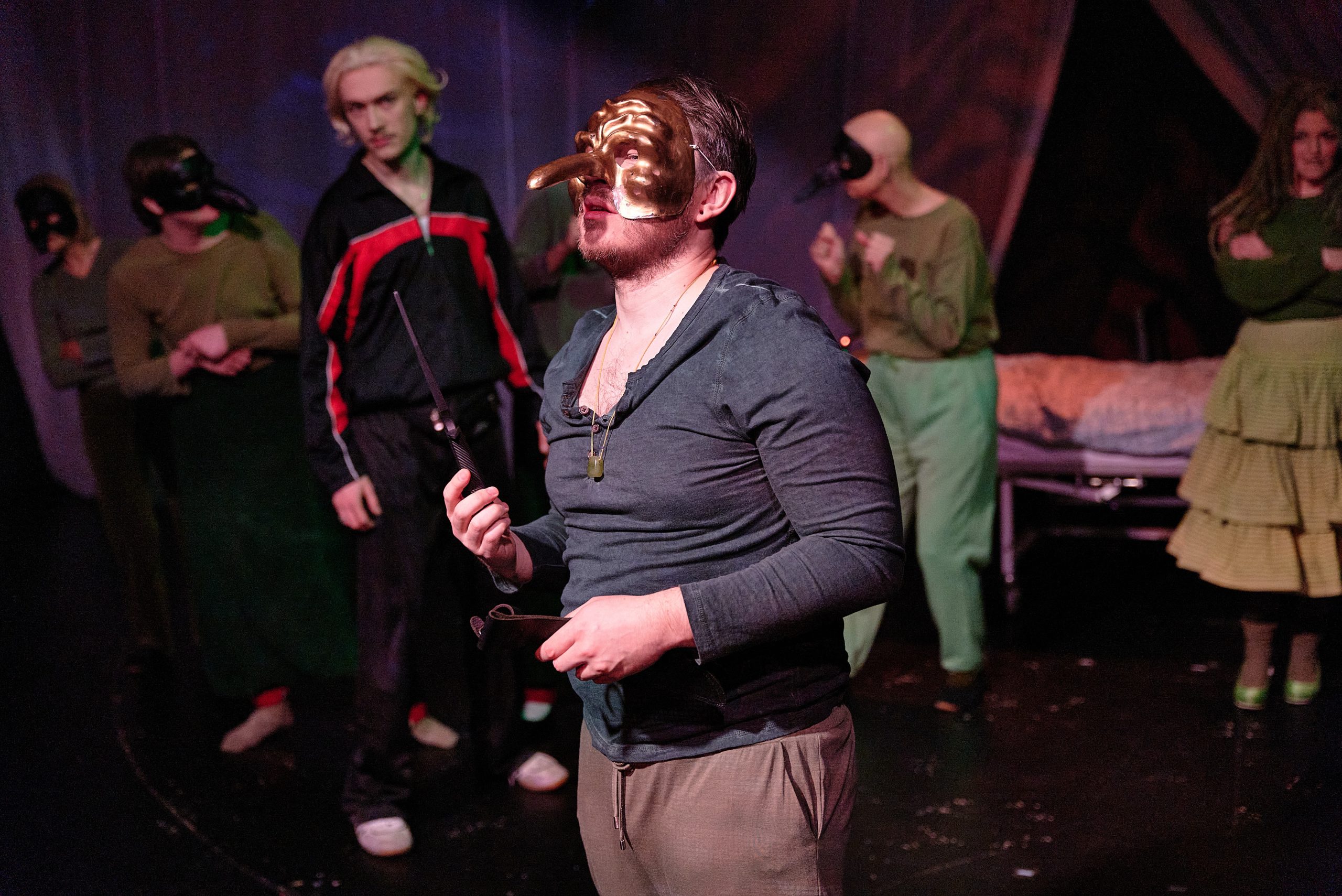 Szene aus dem exzellent gespielten Ibsen-Stück „Peer Gynt“ – © Uwe SchinkelAls einer der Begründer der Theatermoderne wird Henrik Ibsen oft als „Vater des Realismus“ bezeichnet und ist einer der einflussreichsten Dramatiker aller Zeiten. Das Stück des norwegischer Dramatikers, dessen unerschütterliches Engagement für persönliche Freiheit, Wahrhaftigkeit und die Hinterfragung gesellschaftlicher Normen hat ihn fest in der humanistischen Tradition verortet, obwohl seine Stücke viele Zeitgenossen einst schockierten. Ibsens Einfluss auf die britische und irische Kultur wird als tiefgreifend beschrieben.