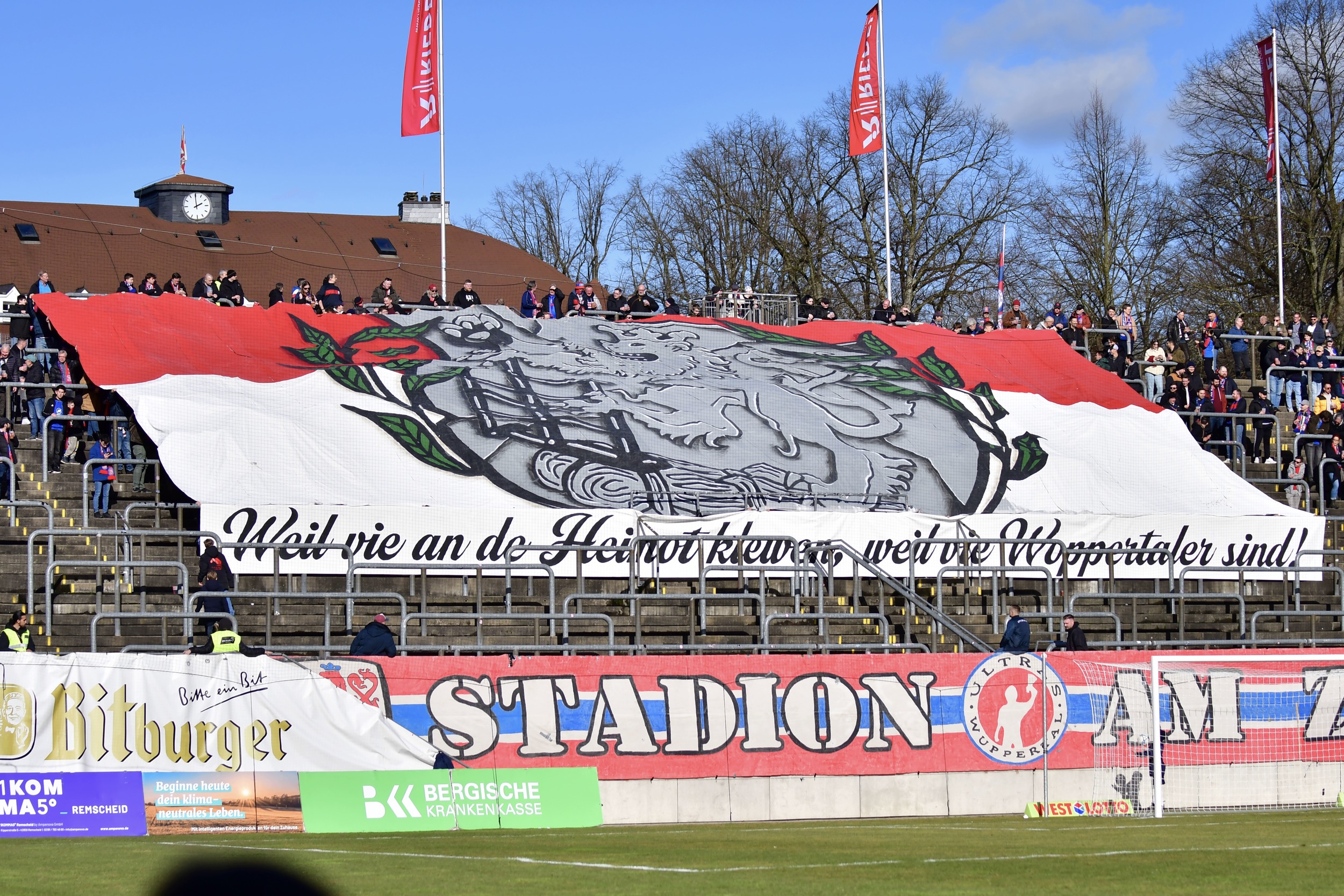 „Weil vie an de Heimat kleben, weil vie Woppertaler sind!“ Mit einem riesigen Spruchband im Wuppertaler Dialekt schmückten die Fans die Horst-Szymaniak-Tribüne im Stadion am Zoo und machten gleich zu Spielbeginn deutlich, dass die „Eiszeit“ zwischen ihnen und der WSV-Führung erst einmal beendet ist. Mit diesem Ziel hatte der Verein zuletzt mehrere, offenbar erfolgreiche Gespräche, mit verschiednen Fangruppen geführt.