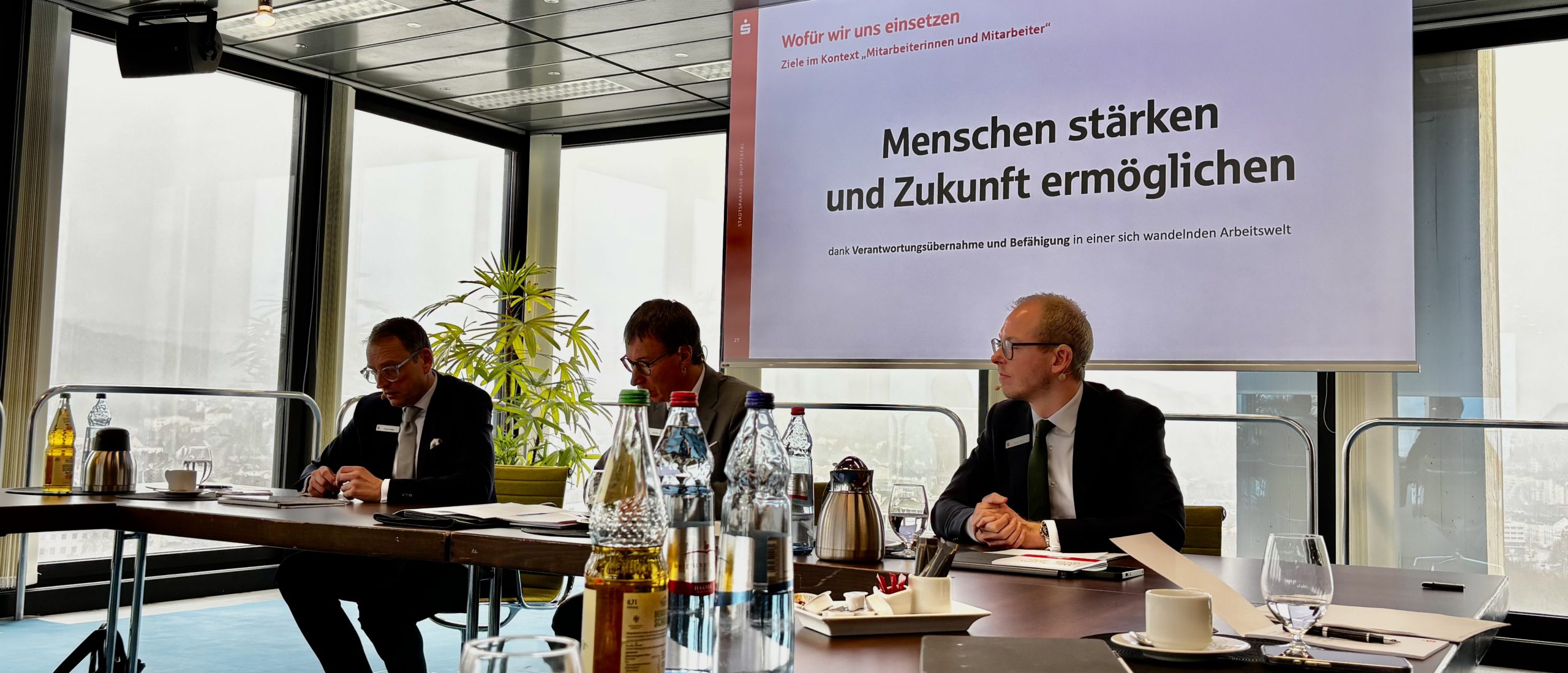Das erfolgreiche „Dreigestirn der Sparkasse Wuppertal: (v.l.l) Holger Iborg (stv. Vorstandsmitglied), Axel Jütz (Vorstandsvorsitzender) und Patrick Hahne (Vorstandsmitglied) – © Sparkasse WuppertalMit dem Jahresergebnis 2025 sehen sich die Wuppertaler nach den Rekordjahren in einem positiven Trend. „Trotz der herausfordernden Rahmenbedingungen sind wir mit dem Jahr 2025 zufrieden“, so Axel Jütz. Sinkende Leitzinsen haben die Ertragslage im Vergleich zum Hochzinsjahr 2024 leicht unter Druck gesetzt. Aber auch gestiegene Personalausgaben durch Tarifabschlüsse sowie auch Investitionen in die IT-Sicherheit belasteten die Kostenstruktur. Axel Jütz sprach von den immer weiter fortschreitenden Veränderungen in Wirtschaft, Gesellschaft und Umwelt, die in der Sparkasse Wuppertal aber auch neue Ideen und Lösungen entstehen ließen, um die Transformation für Kunden und Mitarbeiter positiv zu gestalten.