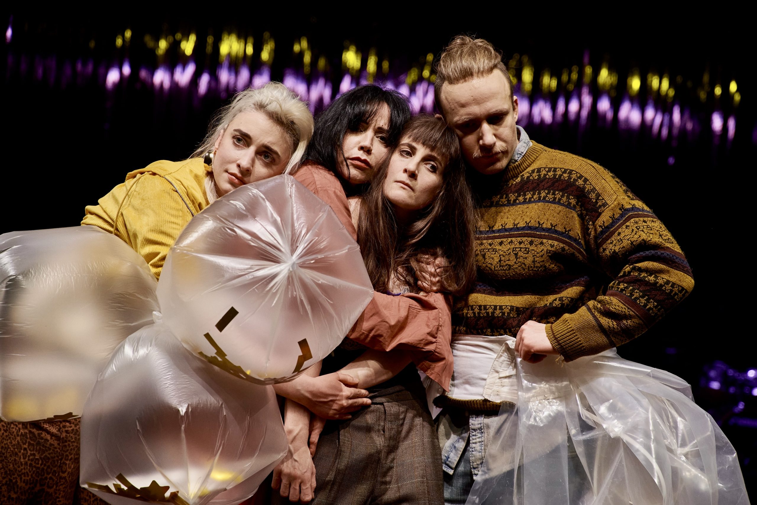 Glänzte mit ihren schauspielerischen Leistungen im Stück „Der Sandmann“: (v.l.) Paula Püschel, Silvia Munzón López, Julia Meier und Konstantin Rickert – © Björn HickmannSehnsucht, Liebe, Angst und Wahn sind die Themen, die Anhänger von Siegmund Freuds Theorien bestätigt sehen werden. Es geht um die Komplexität menschlicher Wahrnehmung und Psyche, mit den Unschärfen zwischen Liebe und Selbstliebe sowie zwischen Wahnsinn und Klarheit. Psychologische Aspekte früher Kindheitserfahrungen stehen in der Deutung für den preisgekrönten Karsten Dahlem im Focus des Geschehens.