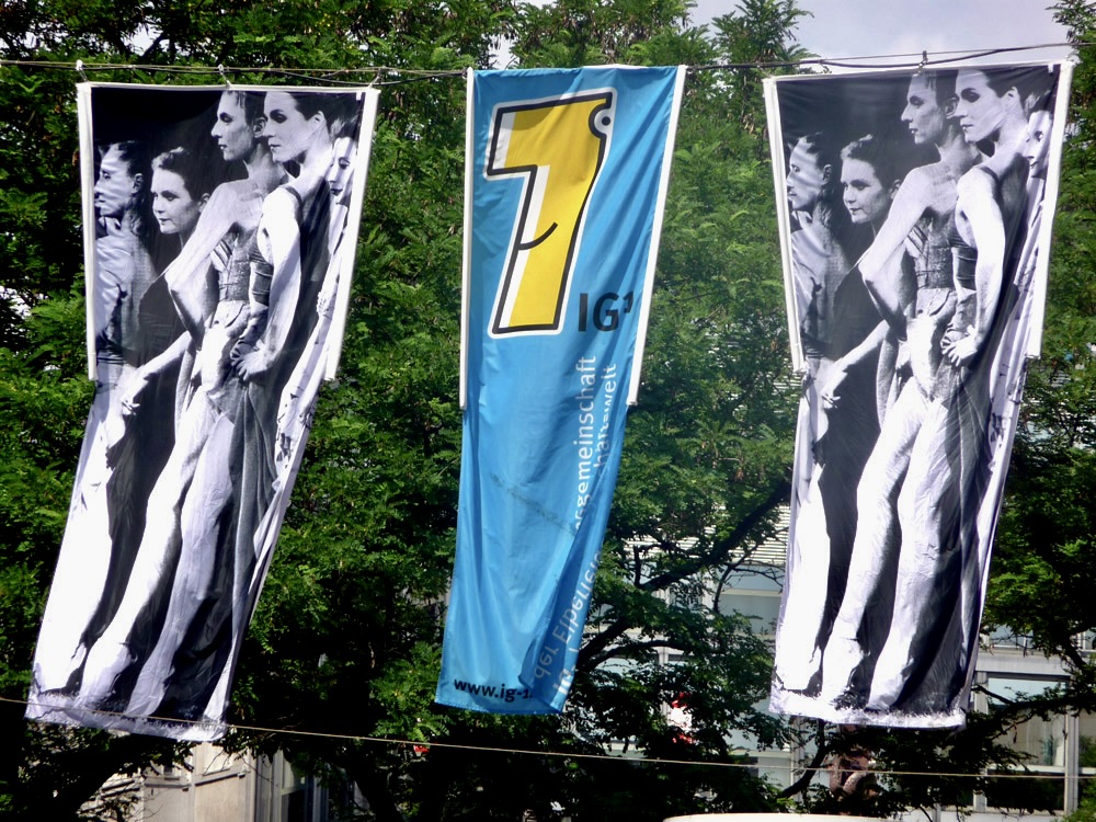 Kommt das Pina-Bausch-Zentrum? Szenenbild vom Wuppertaler Tanztheater Pina Bausch auf Fahnen in Wuppertal-Elberfeld, CC BY-SA 3.0 deNeue Aktionen in unsicheren Zeiten