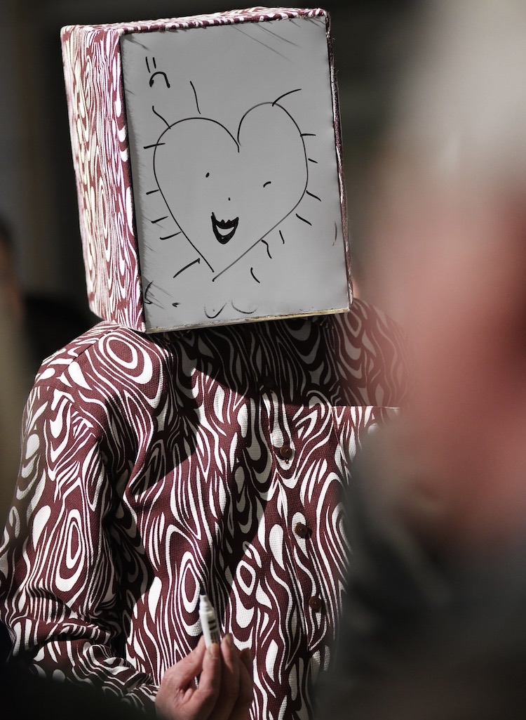 Die Künstlerin Guda Koster und der Künstler Frans von Tartwijk reisten aus Amsterdam an und überraschten die Gäste im Rahmen des Abendprogramms mit Performance Art – © Sparkasse Wuppertal/Bettina OsswaldDass dieses Konzept verlässlich aufgeht, zeigt sich für Klassen sowohl an der Anzahl der Gäste als auch an der Interaktion zwischen den Kunstschaffenden: „Wir zeigen meist Formationen, zwei oder drei Positionen in Kombination. Für die aktuelle Ausstellung haben Felix Baltzer und Volker Wevers erstmals intensiv zusammengefunden. Bestimmte Elemente im Werk des einen tauchen im Werk des anderen wieder auf – ein schönes Beispiel dafür, wie die Kombination künstlerischer Positionen funktionieren kann.“