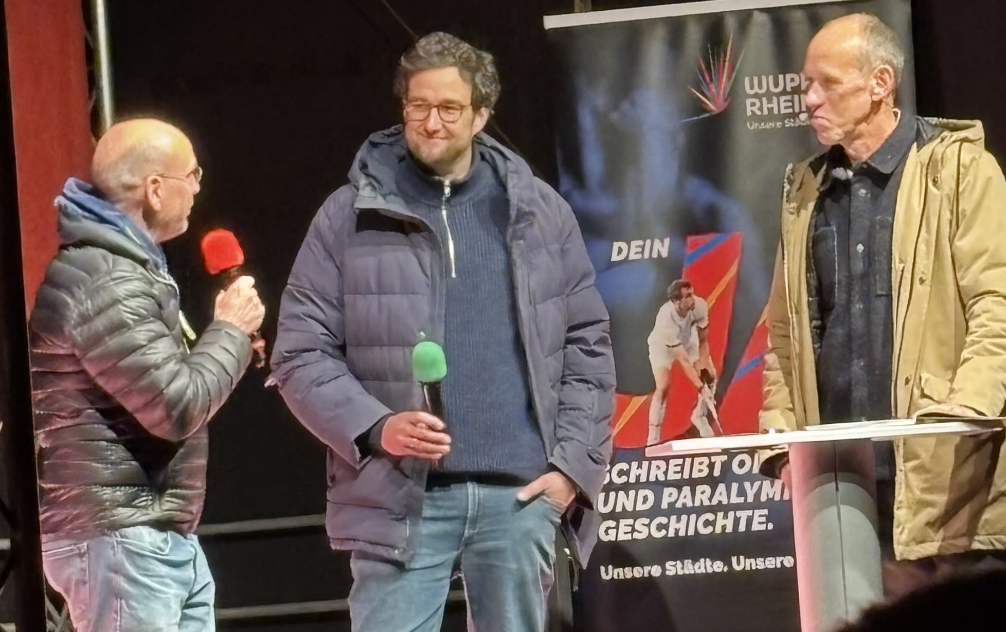 Nicht von ungefähr trat der Wuppertaler Unternehmer Thomas Riedel, der mit seiner Firma seit vielen Jahren Olympische Spiele auf der ganzen Welt mit Funktechnik ausstattet, auch am Freitagabend auf der Bühne am Zoo-Stadion auf und nannte die aus seiner Sicht guten Begründungen für die Bewerbung seiner Stadt, die als Metropole im Zentrum der Rhein-Ruhr-Region von 10 Mio. Einwohnern Konzentration und Nähe verspricht. Wie auch Oberbürgermeisterin Scherff, so wies auch er auf die Fördergelder hin, die bei einem negativen Ausgang in Wuppertal zwangsläufig in andere Regionen abflössen.