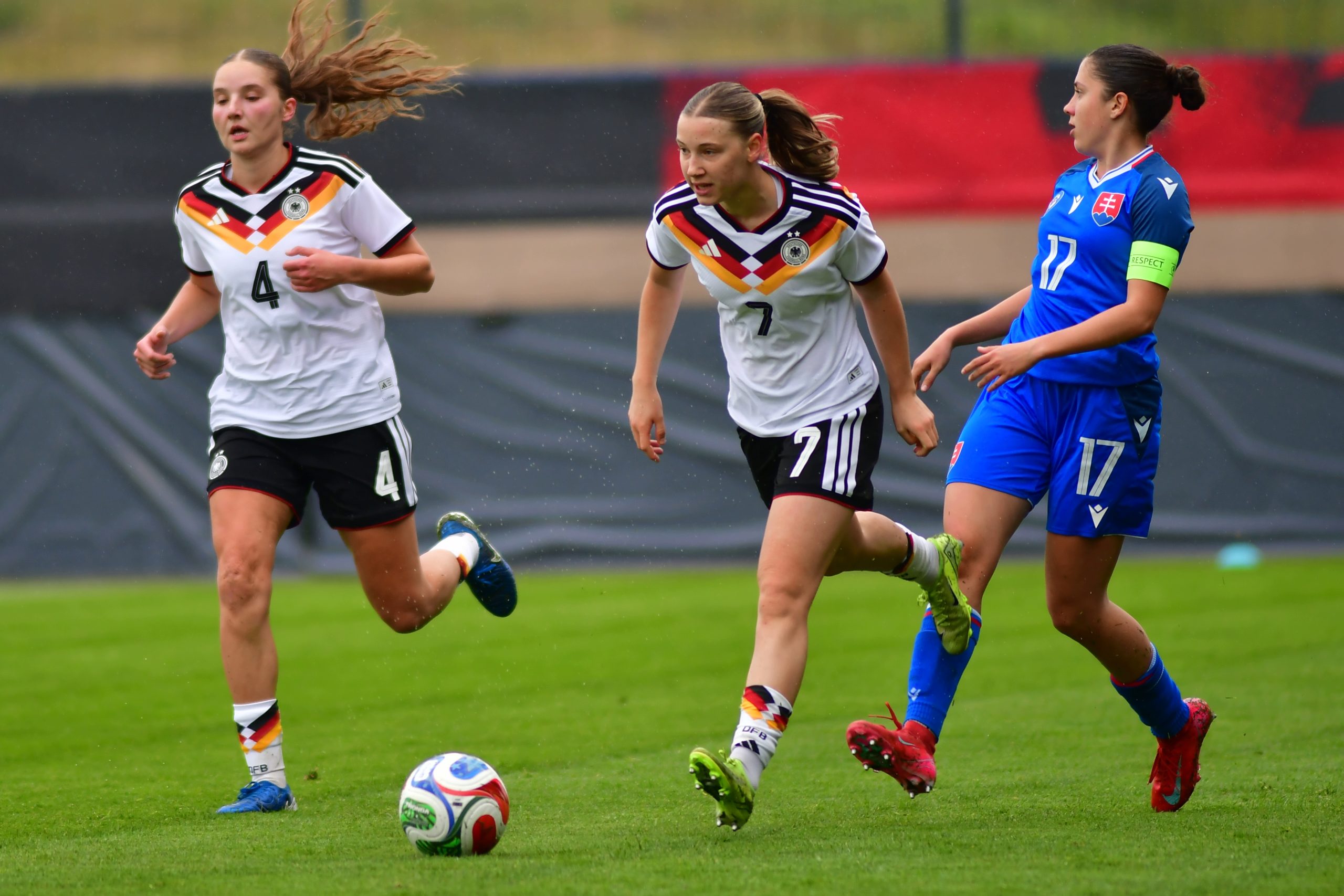 Rumancikova gelang mit einem Linksschuss bereits in der 14. Minute der 1:1-Ausgleich für die Slowakinnen. Doch das Team von Bundestrainerin Melanie Behringer blieb am Ball. Zoe Schick (FC Freiburg) traf per Kopfball zum 2:1 (27.). Wieder leistete Leni Eggert die Vorarbeit.
