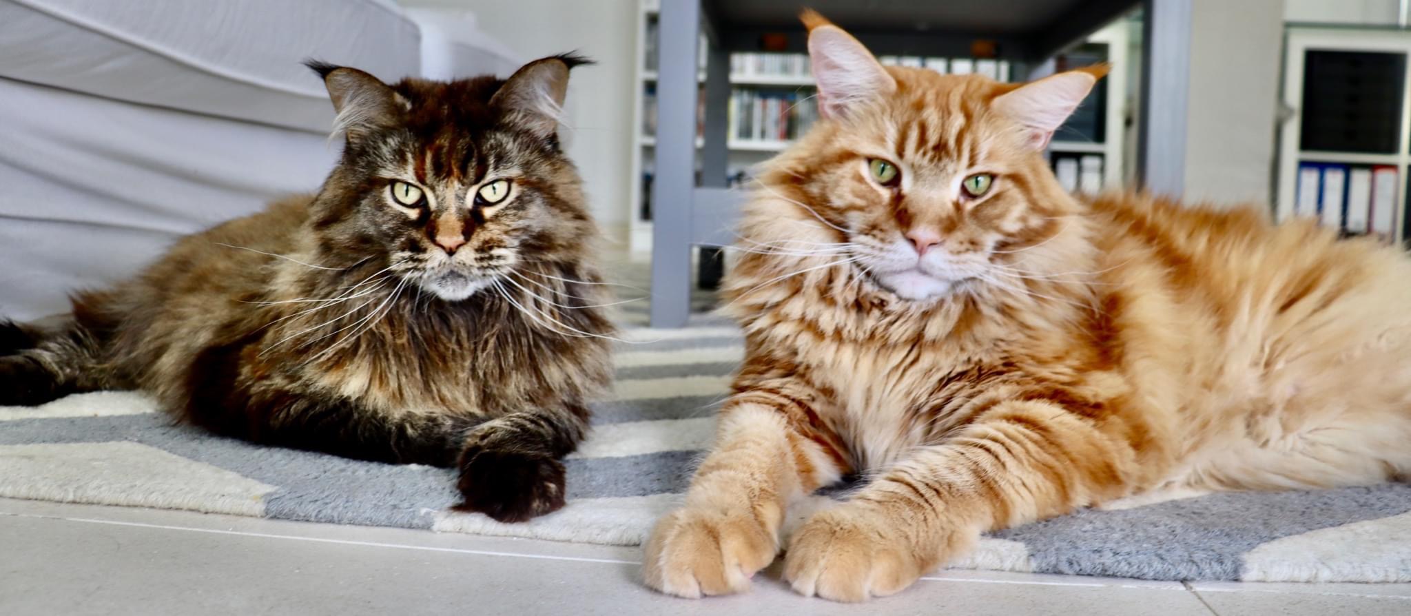 Das „Original: Die beiden Maine Coons Jaliha & Aramis – © Paul CoonDoch jetzt wurde auch meine Katzen Jaliha (12) und Aramis (10) diese Ehre zuteil. Ellen Neugebauer hast die Bein Maine Coons gekonnt portraitiert. Das Gemälde ziert jetzt eine Wand in meinem Appartement.
